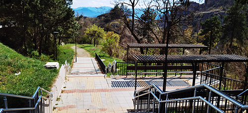 Изградена в миналото алея минава покрай поредица от високи, червеникави канари, а в далечината се разкриват възхитителни пейзажи. На фона на величествените хребети на западния дял на Стара планина се извисяват някои от най-популярните белоградчишки скални форми – Ученичката, Дервишът и други.