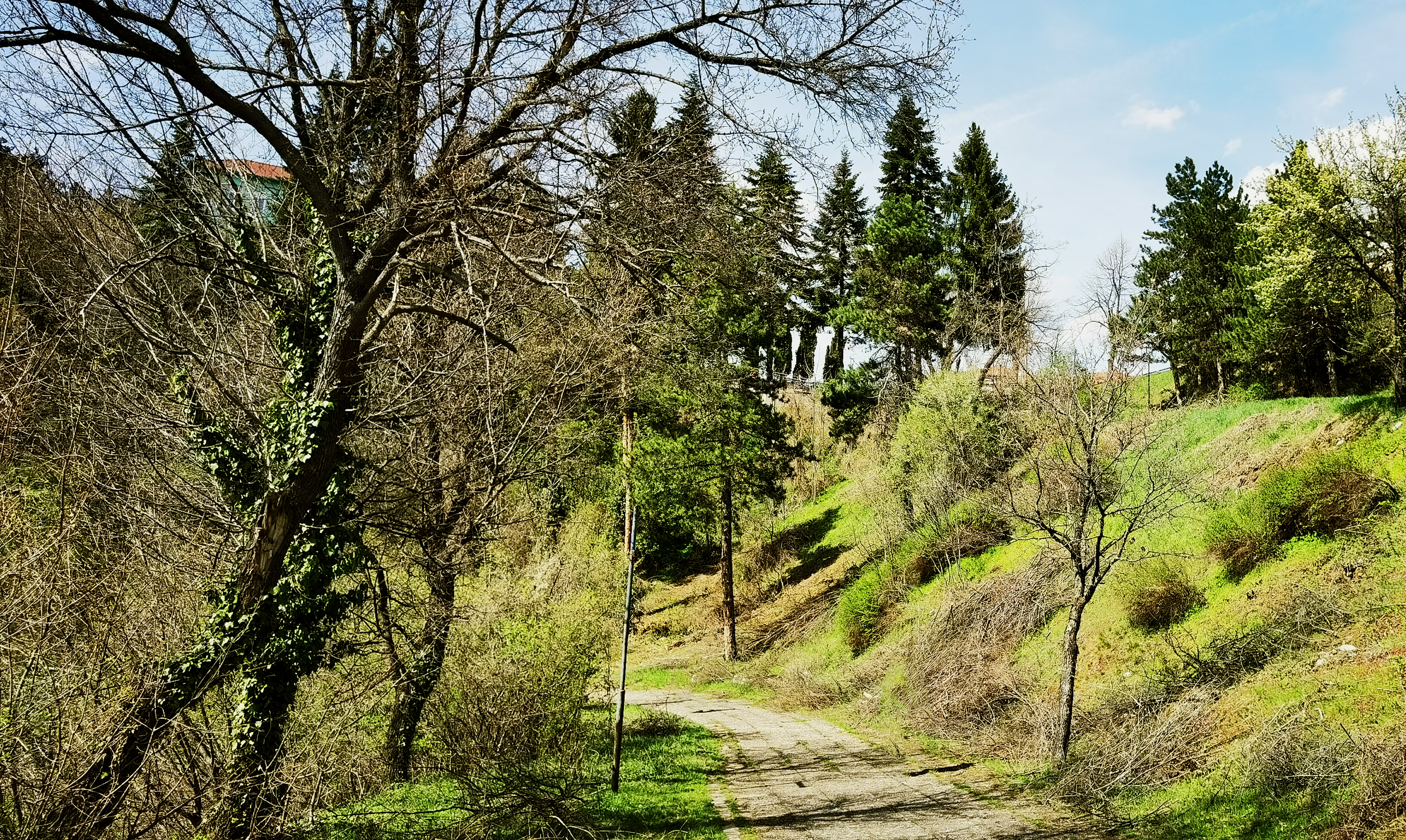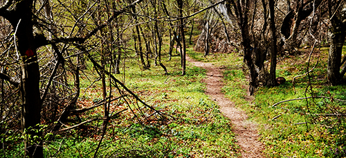 Продължава се по тясна, но ясно очертана пътека, която поема надясно и преминава през рехава широколистна горичка.