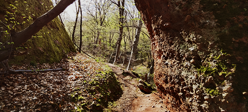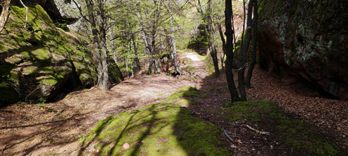 Преминава се през своеобразен проход, обграден от едри каменни блокове, покрити със зелен мъх. Първите около 150 метра от пътеката са по-стръмни, след което наклонът постепенно се изравнява.